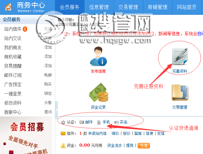 1、完善注冊資料,驗證郵箱。
