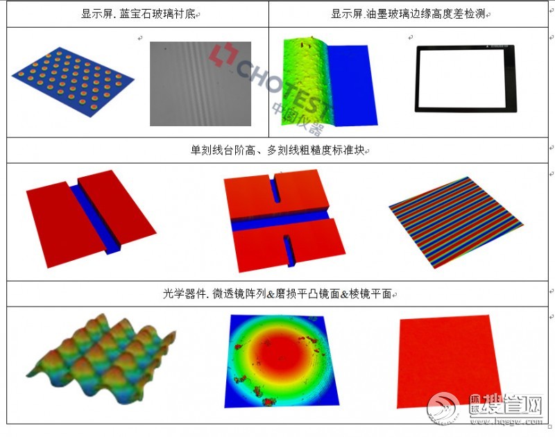 對各種產(chǎn)品、部件和材料表面的平面度、粗糙度、波紋度、面形輪廓、表面缺陷、磨損情況、腐蝕情況、孔隙間隙、臺階高度、彎曲變形情況、加工情況等表面形貌特征進行測量和分析。