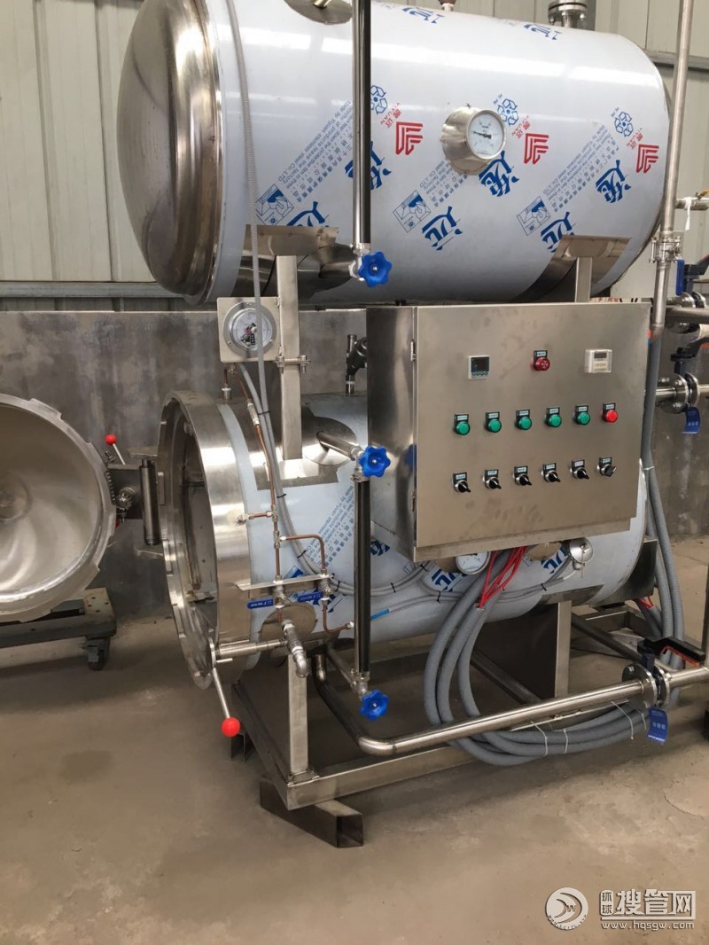 高溫殺菌鍋廠家 殺菌鍋廠家工作原理:在熱水池內用蒸汽將水溫升至沸騰,啟動水泵用大口徑流量管道把熱水抽到鍋內進行直接殺菌。在熱水達到一定水位時,隨即啟動熱水循環泵,把鍋內熱水進行循環,采用三點出水八點進水的方式,在循環時,為了確保鍋內出水點的均勻,采用了三點串聯式.循環水經水汽交換消音器快速升溫(使用此類水汽交換消音器,避免在鍋內加溫時,蒸汽和貨物的直接接觸,使部分貨物溫度偏高),再通過鍋內八個進水點(上、下、左、右各兩點),使熱水直接達到殺菌鍋內進行循環。在鍋內熱水進行循環的同時,蒸汽角座閥自動開啟進行鍋內升溫,在即將達到溫度時,通過溫度變送器準確的把鍋內溫度輸送到溫控儀,控制蒸汽角座閥進行溫度調節,此調節閥是根據鍋內溫度的升降進行逐步調節,以防止鍋內到達溫度時,溫度反沖。在達到設定溫度的同時,關閉蒸汽角座閥門,進入產品殺菌階段(不同產品殺菌時間可調)。在到達殺菌時間后,殺菌鍋廠家報警器會報警提醒,打開出水閥及水泵,把鍋內熱水用水泵輸送到熱水池,下一鍋殺菌時循環使用。產品進入冷卻階段,開啟水泵,把涼水輸送到鍋內,達到設定水位時停止,隨即打開循環閥門,把鍋內涼水進行循環,使產品溫度均勻下降。如工作時間較長,鍋內涼水降不下溫時,打開溢水閥,把鍋內上部熱水排出,同時其它涼水進入,以達到降溫目的。鍋內壓力由壓力變送器隨著鍋內壓力的升降,把信號輸送到壓力控制儀,進行鍋內壓力自動調整,使鍋內壓力始終處于在規定的范圍內。殺菌鍋廠家如超出,可自動停止;如下降,可自動加壓保護。使鍋內產品處于同等壓力下進行殺菌。在鍋內達到工藝設定的冷卻溫度后,隨即把鍋內涼水排出,卸掉鍋內壓力,殺菌完畢。操作人員打開連鎖裝置,開啟鍋門取貨。一系列操作完畢。