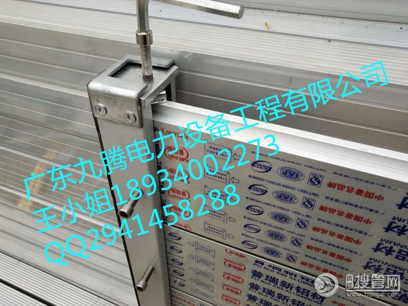 (4)防汛擋水板(防洪擋水板)產品原理:廣東九騰電力設備有限公司高強度WX型鋁合金防汛擋水板(防洪擋水板)主體由擋板和支撐件組成,防汛擋水板底部設有密封橡膠與地面柔性貼合,加上擋板自身重量,使得防汛擋水板與地面有較好的密封效果,防汛擋水板之間的搭接處也設有密封橡膠,并用連接板加固,使得擋水板之間有較好的防漏效果,每塊防汛擋水板背水側都設有兩個支撐,支撐架與防汛擋水板通過螺栓連接形成三角形支撐面,使得擋板更穩定。支腿通過球形結構與底座連接,使得支腿可以自由旋轉,通過支腿的旋轉運動轉化成支桿的直線運動從而調節支撐點的高度。