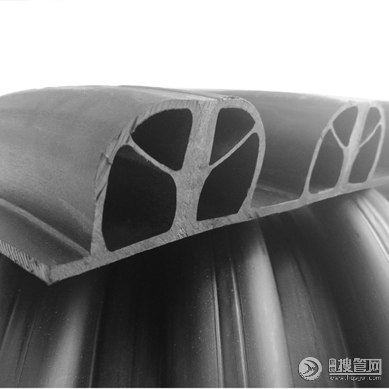 HDPE多肋增強纏繞波紋管是一種外壁為纏繞波紋狀,且波紋內有聚乙烯材質的立筋及以立筋為對稱面的兩個斜向支持筋的全柔性管道,多肋加強筋結構有利地提高管材的環剛度。