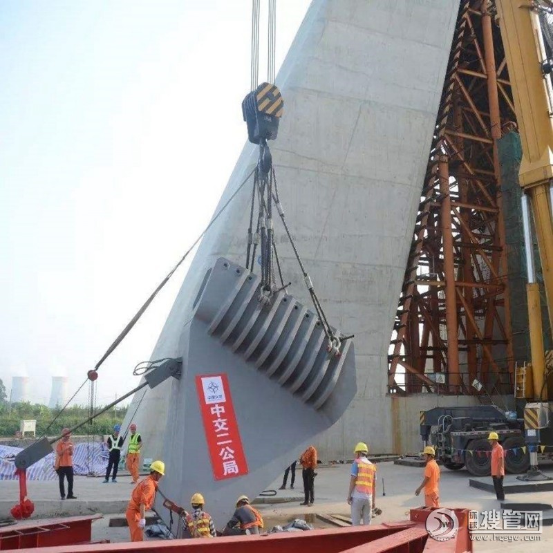 在懸索上在等距離的位置上要加上索夾,事先計(jì)算好長(zhǎng)度的懸掛索被架在索夾上。這些懸掛索的另一端將來(lái)要固定橋面,使用專(zhuān)門(mén)的起重機(jī),橋面被一塊接著一塊地掛在懸掛索上。這個(gè)起重機(jī)可以自己掛在懸索上或掛在特別的臨時(shí)的索上。橋面可以從橋下的船上吊起或從橋的兩端運(yùn)到它們應(yīng)該放到的地方。當(dāng)所有橋面被掛上后,通過(guò)調(diào)節(jié)懸索可以使橋面達(dá)到計(jì)劃的曲線(xiàn)。一般水面上的橋的橋面呈拱形,以便橋下船只通行。陸上的懸索橋的橋面一般是平的。橋面完成后可以進(jìn)行其它細(xì)節(jié)工作,比如排水防水系統(tǒng)、伸縮縫、裝燈、欄桿、涂漆、鋪路等等。