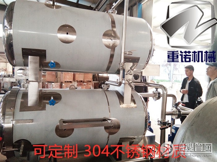 4、若從節約能源考慮,可選擇雙層殺菌鍋,其特點是上罐是熱水罐,下罐是處理罐,上罐的熱水重復使用,可節約大量蒸汽,適合每天產量超過10噸的食品生產企業。