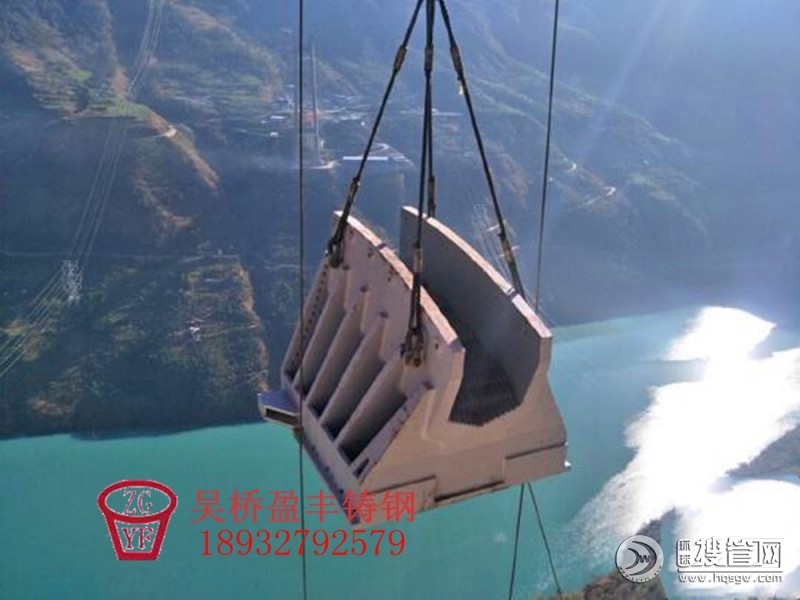 索鞍是專供懸索繞過塔頂的支撐并使主纜平順地改變方向的結構。索鞍的上座由肋形的鑄鋼塊件組成,上設有索槽安放懸索。在剛性橋塔中的索鞍,一般還在上座下設一排輥軸,輥軸下設下座底板,把輥軸傳來的集中載荷更好地分布在塔柱上。在擺柱式或柔性橋塔中的索鞍,僅設鑄鋼的上座,并通過螺栓與塔柱固定。索鞍鑄件較重,例如金門大橋索鞍重150噸,長6.58 m,寬3.05 m,高3.22 m。為了便于制造,分三段澆鑄。為了在安裝時便于調整,在上座下往往設一排輥軸,當調整完畢后將其封死,仍然使它固結在塔頂。有的吊橋為了減輕索鞍重量不采用鑄件,而采用焊接的鋼結構索鞍,圓弧半徑一般為主索直徑的8~12倍,以此減少主索鋼絲的二次應力。